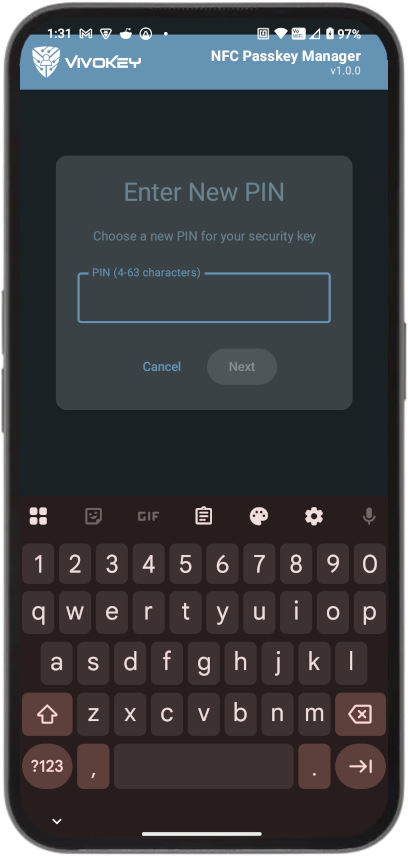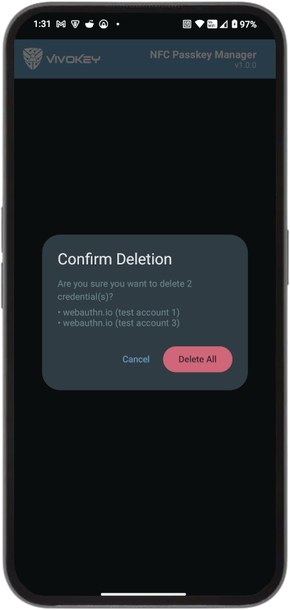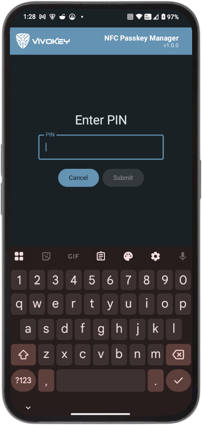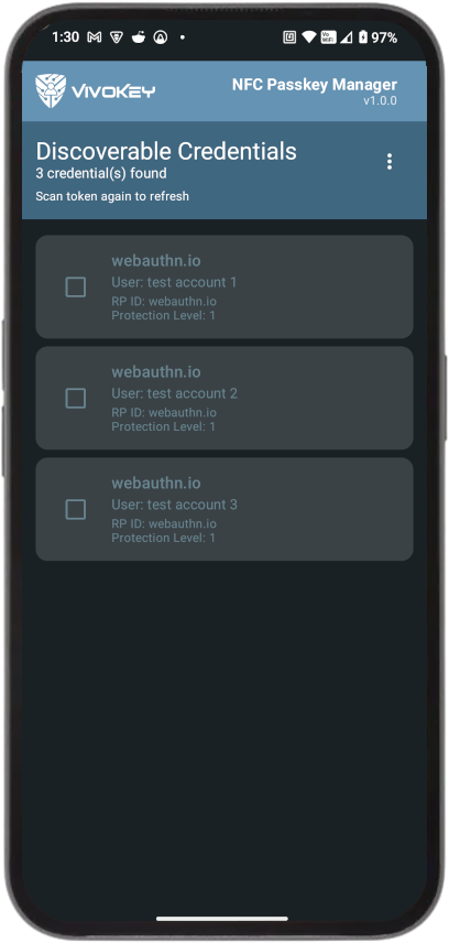 NFC Passkey Manager (“the App”) is provided by VivoKey Technologies (“we,” “us,” or “our”). The App lets you manage passkey credentials on an NFC security key (list credentials, change the token PIN, and delete selected credentials). We do not collect, share, or sell any personal or sensitive user data.